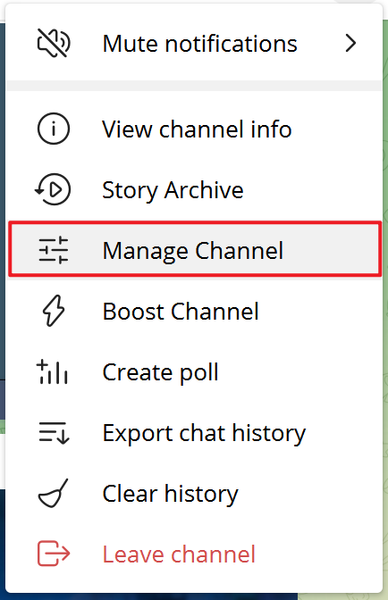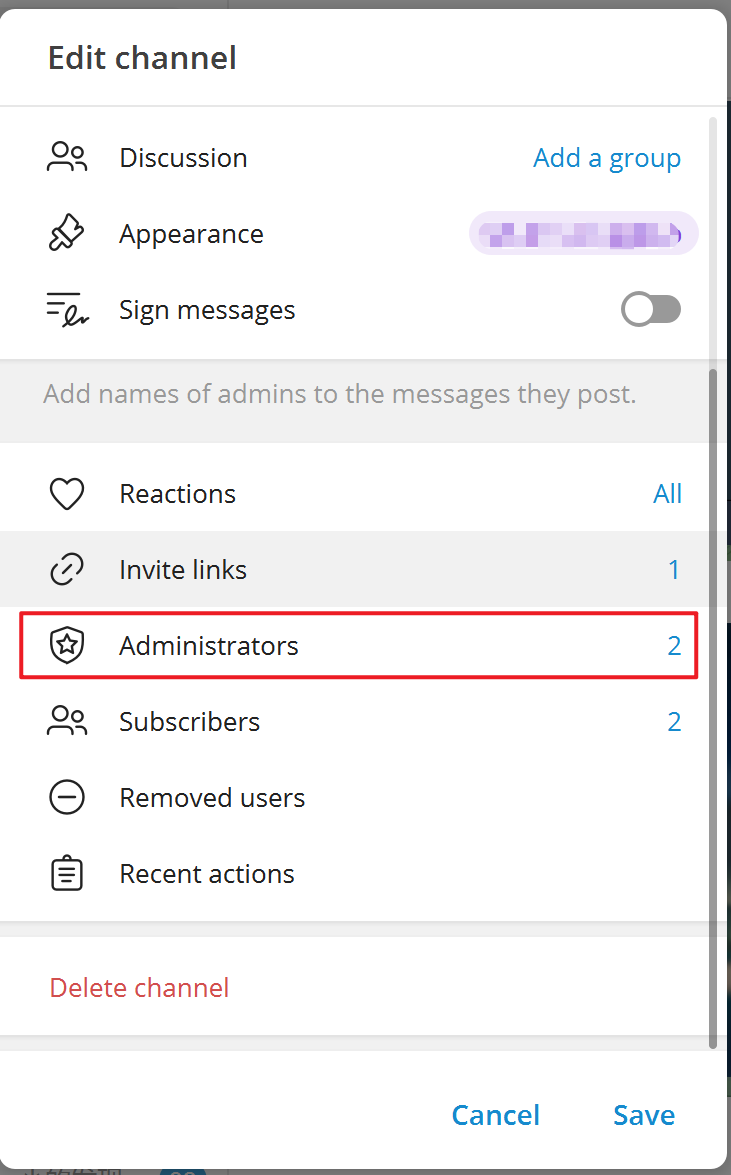 • 创建一个新的频道Channel进入该频道后选择频道设置。将刚刚创建的机器人添加为频道管理员这样机器人才能发送消息。
