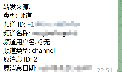 • 或者通过@GetTheirIDBot获取您的频道ID。向该机器人发送消息按照指示操作最后您将得到CHAT_ID即频道的ID